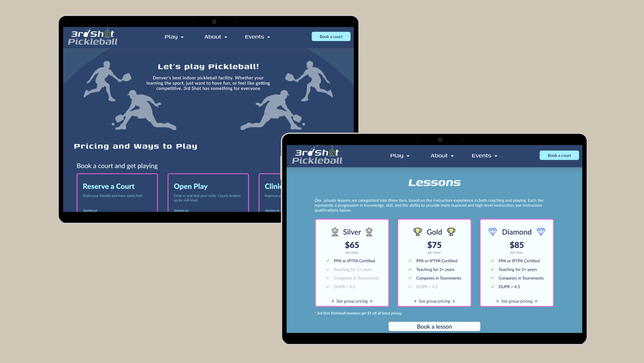 Indoor Pickleball facility offering court reservations, memberships, leagues, private lessons, and tournaments. Website navigation is difficult to follow, with 60% of users bypassing the website altogether.